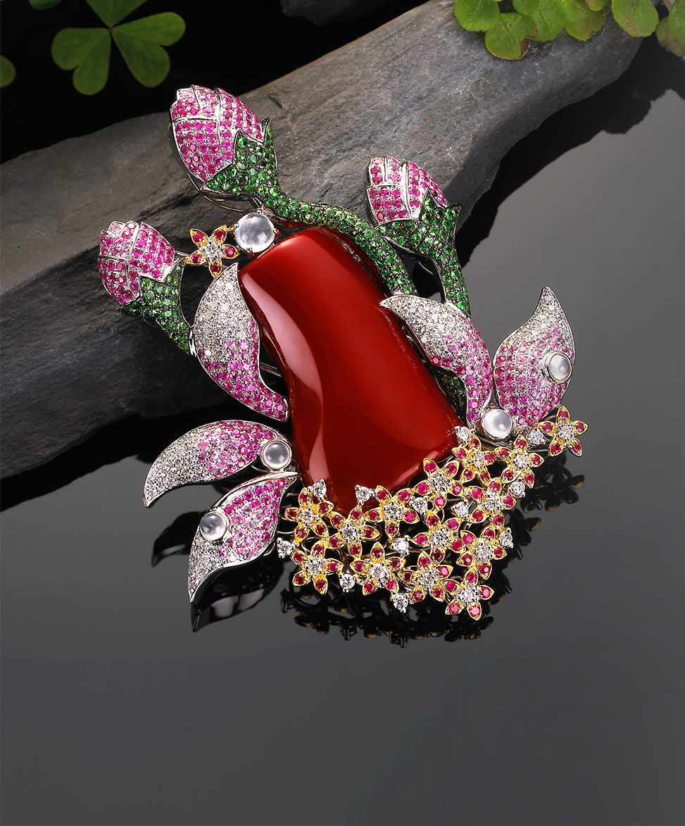 文学珠宝系列,以文学作品为设计灵感来源,以珠宝首饰为载体,传递作者内在的思想与情感。文学作品或诗歌,或散文,或国画,或戏剧,每一件首饰都蕴含一个引人入胜的故事,设计师巧妙运用中华美学意在言外、虚实相生、动静相宜的表现手法,赋予珠宝生机灵动、意味深长的人文意境,虽不着一字,但内在的思想与情感已抒发得淋漓尽致。璀璨的珠宝不仅是昂贵的装饰,更是动人心弦、饱含情感的艺术品。