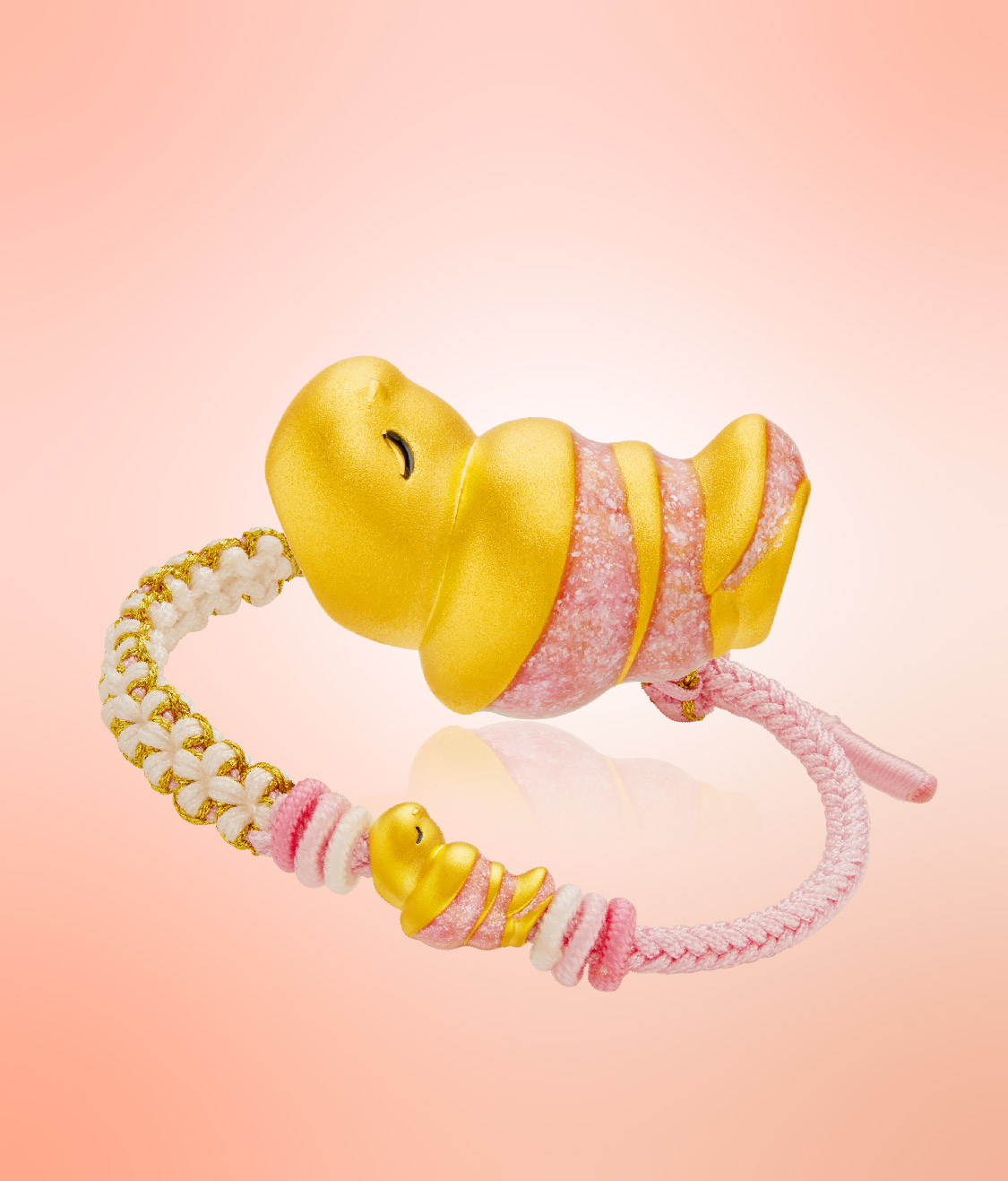 硬足金工艺打造,特调渐变粉色珐琅与黄金相互映衬,光泽细腻闪耀。