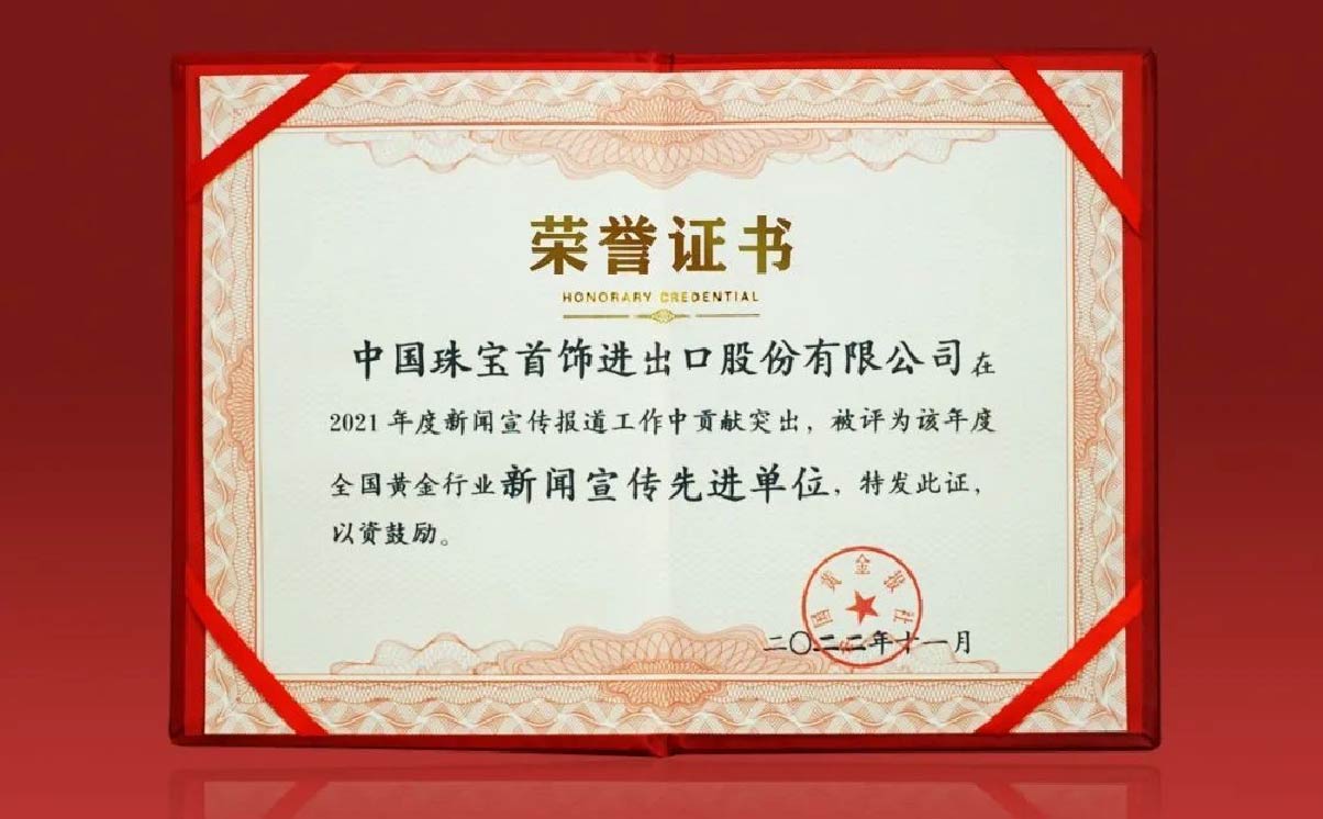 中国珠宝获评全国黄金行业“新闻宣传先进单位”