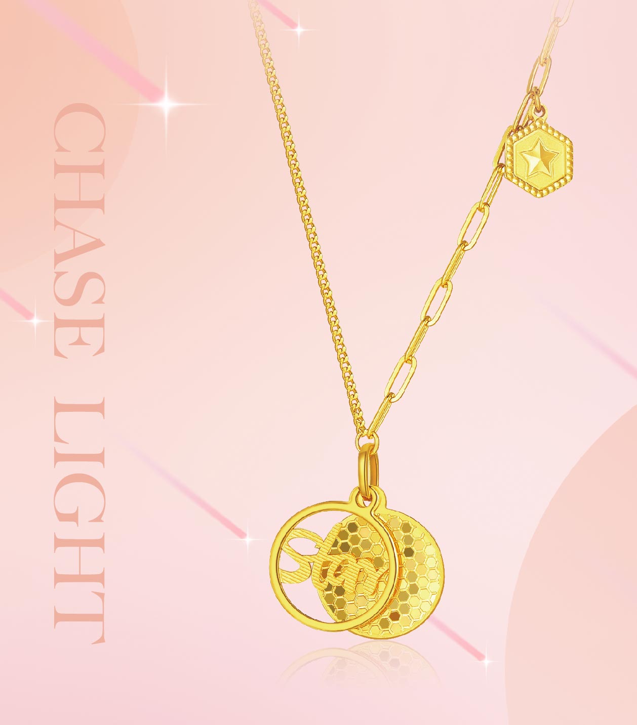 追光,你的幸运闪闪发光。你的光芒,由你定义你只管努力发光,幸运美好随光而至!你所追寻的每一缕光芒,皆烙印着破茧重生的生命记忆。当羽翼浸透岁月的流光这份幸运将引你穿越长夜,抵达繁星之巅。通过“自造光芒-定义轨迹-传递幸运”三层叙事,重新诠释“追光”内核,精准触达时代女性“在快速变化的时代中自洽”的情感需求让金饰升华为当代女性自信掌控人生的黄金勋章。幸运不是天赐,而是自我雕琢的锋芒。