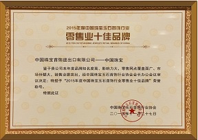 12月,再度荣获“中国珠宝十大影响力品牌”荣誉称号。