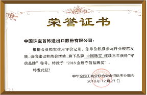 2019年9月,成为“中国珠宝玉石首饰品牌集群”首批成员单位。