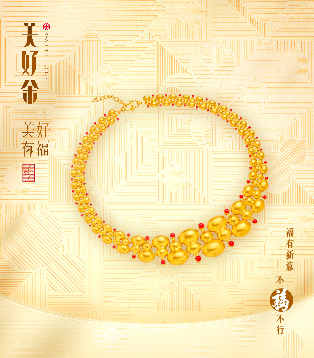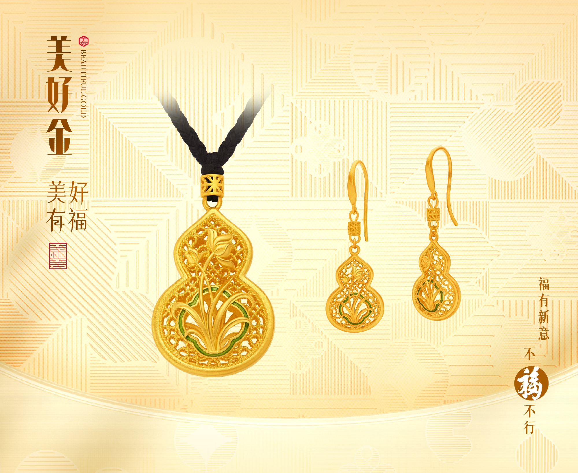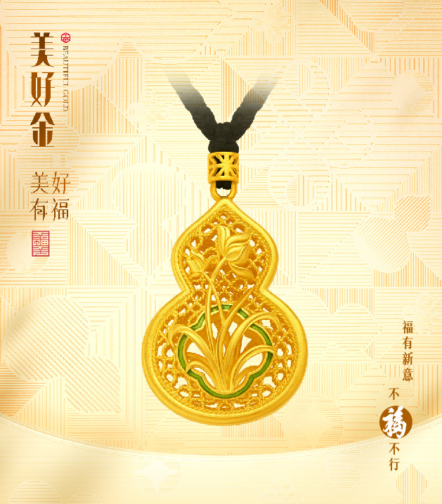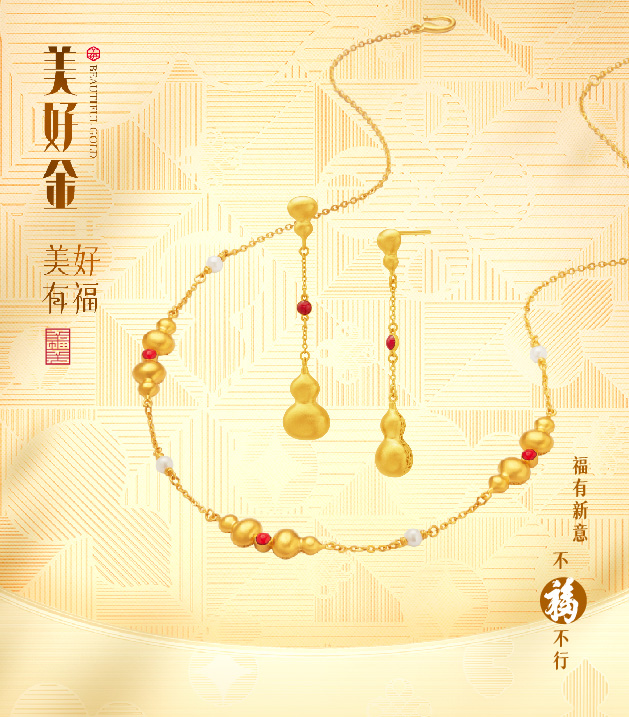 美好有福系列从中华吉祥图腾葫芦中汲取灵感,以华丽对称的美感设计打破葫芦经典定式彰显摩登张力,以中式内蕴匠造鎏金艺境,非遗花丝灵动勾勒东方美韵,线美学,典雅气韵与吉祥寓意完美融合,时尚高定金饰的奢华感拉满,华贵非凡,营造出传统与现代兼具的时尚风格,将精巧的设计幻化为可佩戴的艺术品,演绎东方美学的独特韵味,呈现极具辨识度的符号美学。